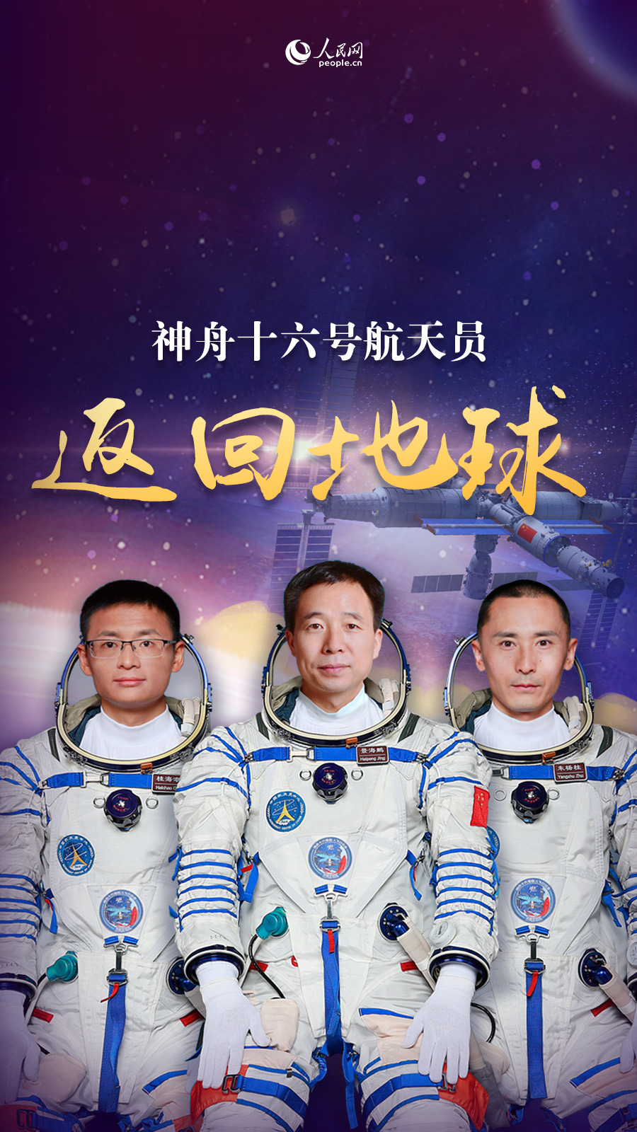 神舟十六号载人飞船于2023年5月30日从酒泉卫星发射中心发射升空,随后与天和核心舱对接形成组合体。作为首批执行空间站应用与发展阶段载人飞行任务的航天员乘组,3名航天员在轨驻留154天,期间进行了1次出舱活动和中国空间站第四次太空授课活动,配合完成空间站多次货物出舱任务,为空间站任务常态化实施奠定了基础。