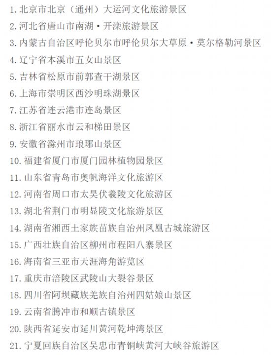 蓝狮娱乐:国家5A级旅游景区新增21家