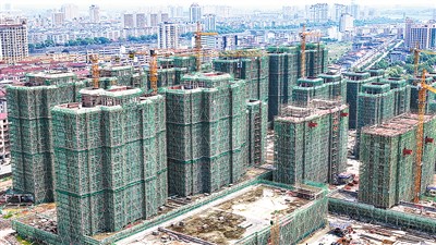 浙江宁波余姚市城区堰头安置房项目投资约21亿元,建成后可提供安置房源1073套、保障性租赁住房184套,将让更多居民实现安居梦。图为日前,建设人员在该项目现场加紧施工。