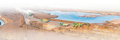 洪泽湖周边滞洪区建设工程江苏泗洪县施工现场。